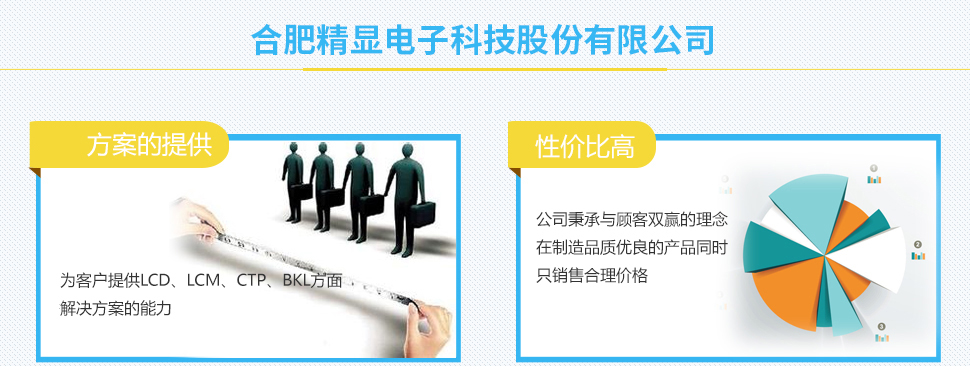 ?合肥精顯電子科技股份有限公司成立于2012年,由液晶行業(yè)知名企業(yè)廈門精顯電子有限公司投資建設(shè),是一家研發(fā)、生產(chǎn)、銷售高品質(zhì)液晶屏(LCD)、液晶顯示模塊(LCM)、背光(LED)、電容式觸摸屏(CTP)等節(jié)能環(huán)保產(chǎn)品并能為顧客提供解決方案的高新科技企業(yè)。 ?公司占地55畝,擁有建筑面積超過20000平米和潔凈廠房5400平米。 ?公司擁有一個超過15年以上LCD行業(yè)運營制造經(jīng)驗的團隊。 ?公司獲得研發(fā)專利20余項。 ?公司通過C-TPAT認(rèn)證,ISO9001:2008認(rèn)證,產(chǎn)品通過了ROHS、REACH。 ?我們產(chǎn)品廣泛應(yīng)用于智能儀表(水表,電表,氣表)、家電、儀器儀表、計量器械、文教 器具、UPS電源、智能手機機、平板電腦等電子產(chǎn)品的顯示和控制。目前我們已樹立了良好的品牌形象,并與眾多公司(如GE, Ja...